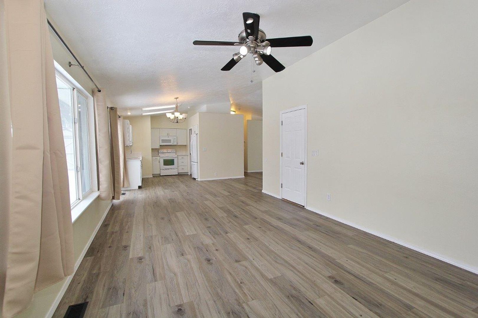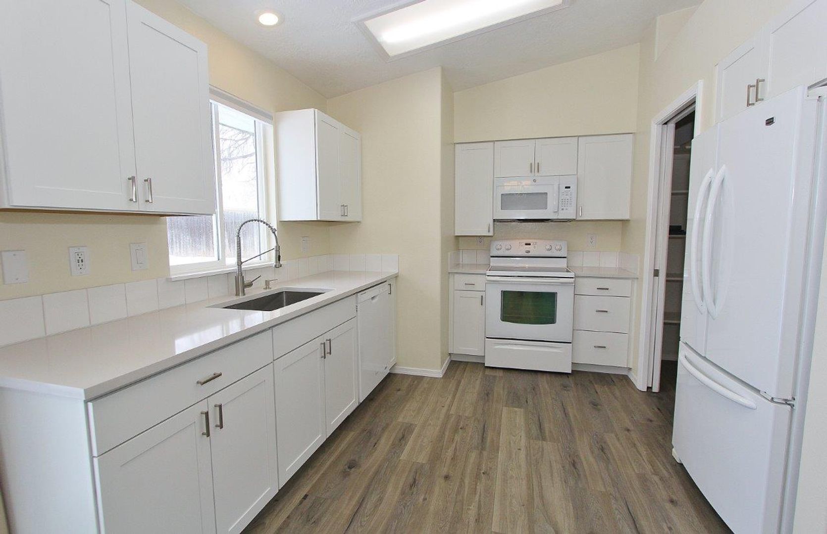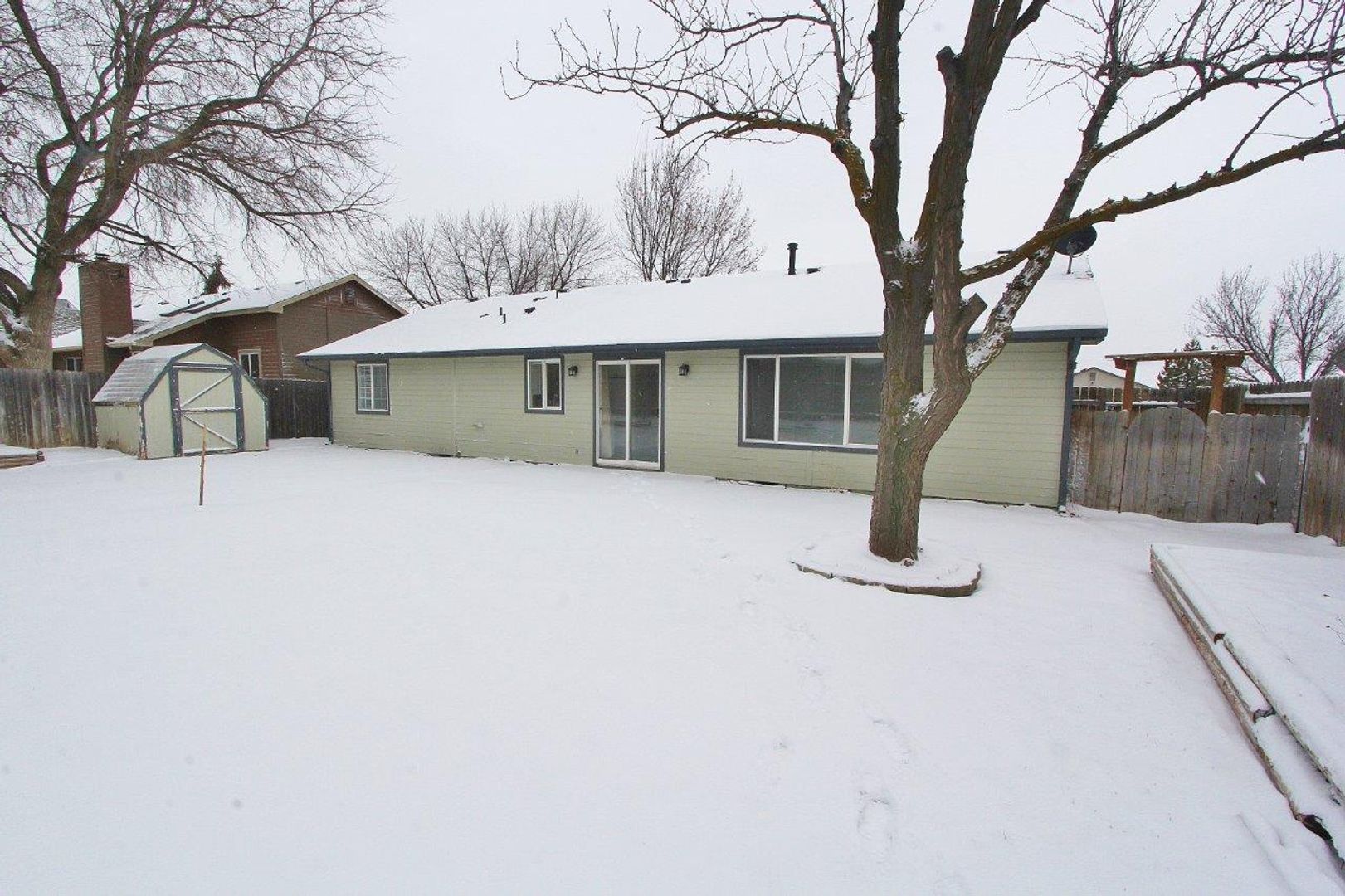 Single level home w/mature landscaping nestled in a quiet neighborhood. The living room & kitchen have vaulted ceilings, plant shelves, quartz countertops & laminate flooring throughout. There is a separate family room & master suite. The private backyard is ideal for relaxing & includes a storage shed. Located within minutes of parks/walking paths, shops/dining, & interstate access.