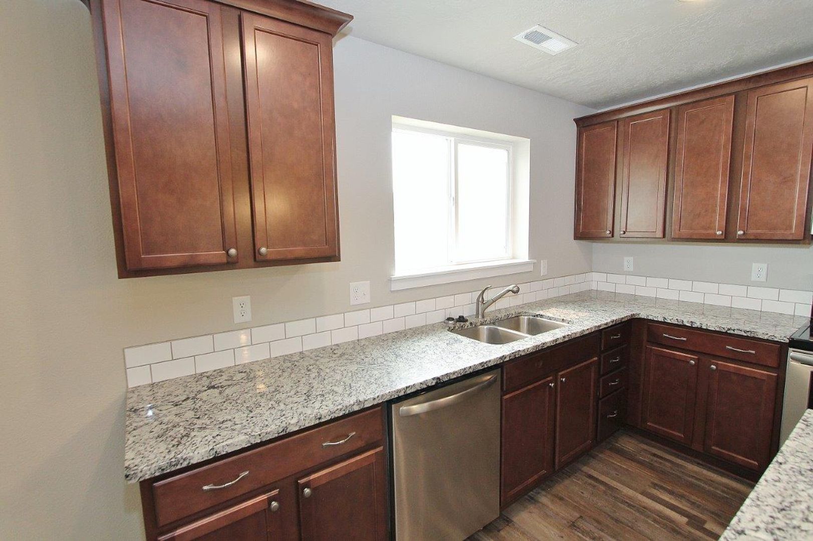 Spacious home w/open floor-plan nestled in a quiet neighborhood. The inviting living room beautiful laminate flooring throughout & plenty of natural light flowing in. The open kitchen feature an island w/breakfast bar, granite counter-tops, stainless-steel appliances, & pantry. The master suite offers dual vanity sinks, garden soaker tub, & walk-in closet. Separate office/den, large laundry room, mud room, private backyard w/covered patio, & so much more!